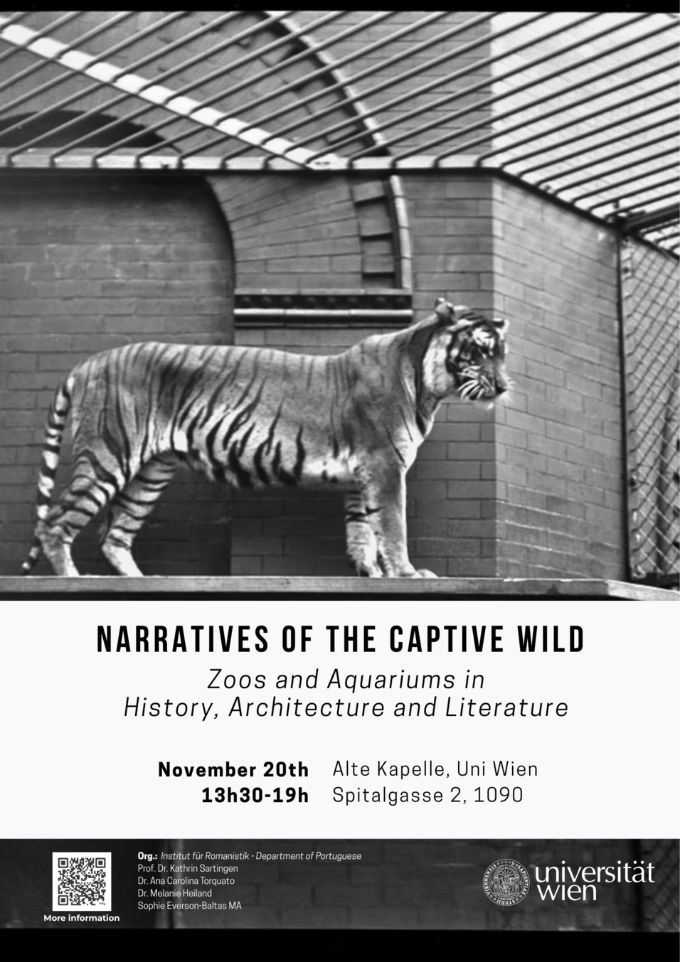 das Symposium „Narratives of the Captive Wild: Zoos and Aquariums in History, Architecture and Literature", organisiert vomInstitut für Romanistik, Abteilung Portugiesisch, rückt näher, und wir freuen uns, Sie zu einem Nachmittag des interdisziplinären Austauschs und der Diskussion einladen zu dürfen.